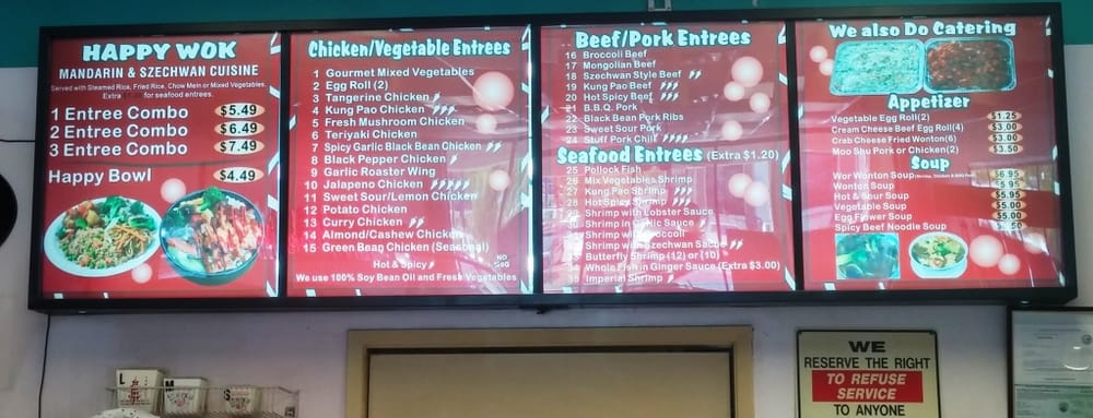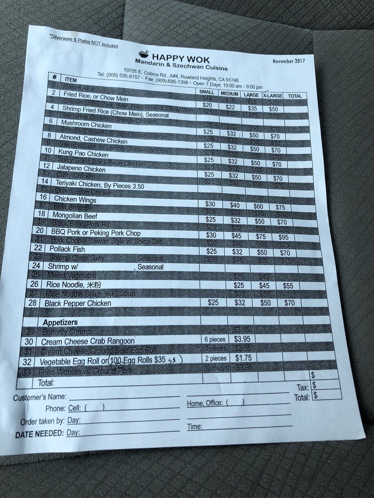 Happy Wok in Rowland Heights, CA, is a Chinese restaurant that offers delivery, takeout, and catering services. With limited vegetarian options, this casual spot is great for groups and families, serving lunch and dinner. Customers praise the friendly staff, generous portions, and affordable prices. The chow mein and tangerine chicken are highly recommended for their improved quality and flavor. The restaurant has a clean and renovated ambiance, with added menu items like beef and cream cheese egg rolls. Despite some mixed reviews on specific dishes, Happy Wok remains a favorite for those craving Chinese comfort food. Overall, the restaurant provides a satisfactory dining experience with ample parking and pleasant service.
